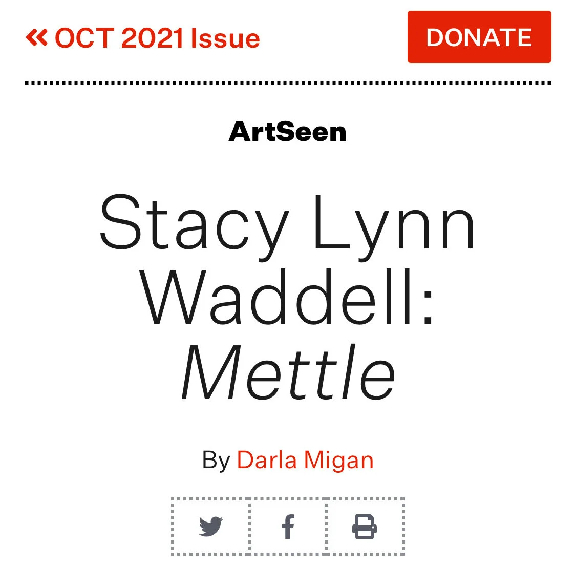 Stacy Lynn Waddell’s solo exhibitions include Home House, Isabella Stewart Gardner Museum, Boston, MA; Mettle, CANDICE MADEY, New York, NY; Epitaph for A Darling Lady, Visual Arts Center of Richmond, Richmond, VA; and The Evidence of Things Unseen, Weatherspoon Art Museum, Greensboro, NC, and others. Recent group exhibitions include Spirit in the Land, The Nasher Museum of Art (curated by Trevor Schoonmaker); Get Lifted! The Art of the Ecstatic, KARMA, New York, NY (curated by Hilton Als); Taking Space: Contemporary Women Artists and the Politics of Scale, Pennsylvania Academy of the Fine Arts, Philadelphia, PA and The Montclair Art Museum, Montclair, NJ; Half the Picture: A Feminist Look at the Collection, Elizabeth A. Sackler Center for Feminist Art, Brooklyn Museum, Brooklyn, NY. Her work is in the collections of The Bristol Museum of Art and Gallery, The Brooklyn Museum, The Crystal Bridges Museum of American Art, The Gibbes Museum of Art, The Mint Museum, The Nasher Museum of Art, The North Carolina Museum of Art, The Pennsylvania Academy of the Fine Arts, The Princeton University Art Museum, The Studio Museum in Harlem, and The Weatherspoon Art Museum, among numerous other museums and private collections. Stacy was a Civitella Ranieri Foundation Fellow in Umbria, Italy in 2021, and in 2017, she was an Artist-in-Residence at Joan Mitchell Center in New Orleans. She was a 2010 recipient of the Joan Mitchell Foundation grant.